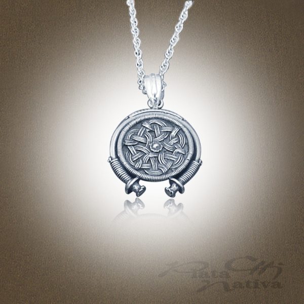 Colgante Torques de Foxados: Del conjunto de Torques del Tesoro de Foxados, (Curtis – A Coruña) destaca uno con grandes remates de perfiles agudos, cuyo frente esta decorado con hilos entrelazados y una media esfera central cercada por un hilo torso laminado. Composición circular adaptada a los remates y enmarcada por un hilo liso roscado en sección tubular.