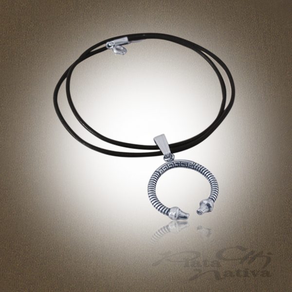 Colgante Torques – Pequeño: Se entrega con cordón de cuero: Marrón o negro, largo 44 cm. con terminales y cierre de plata (925)