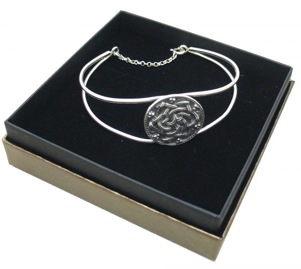 Esta. es una reproducción de la mencionada decoración, el torques original se expone en el Museo Arqueológico San Antón – A Coruña